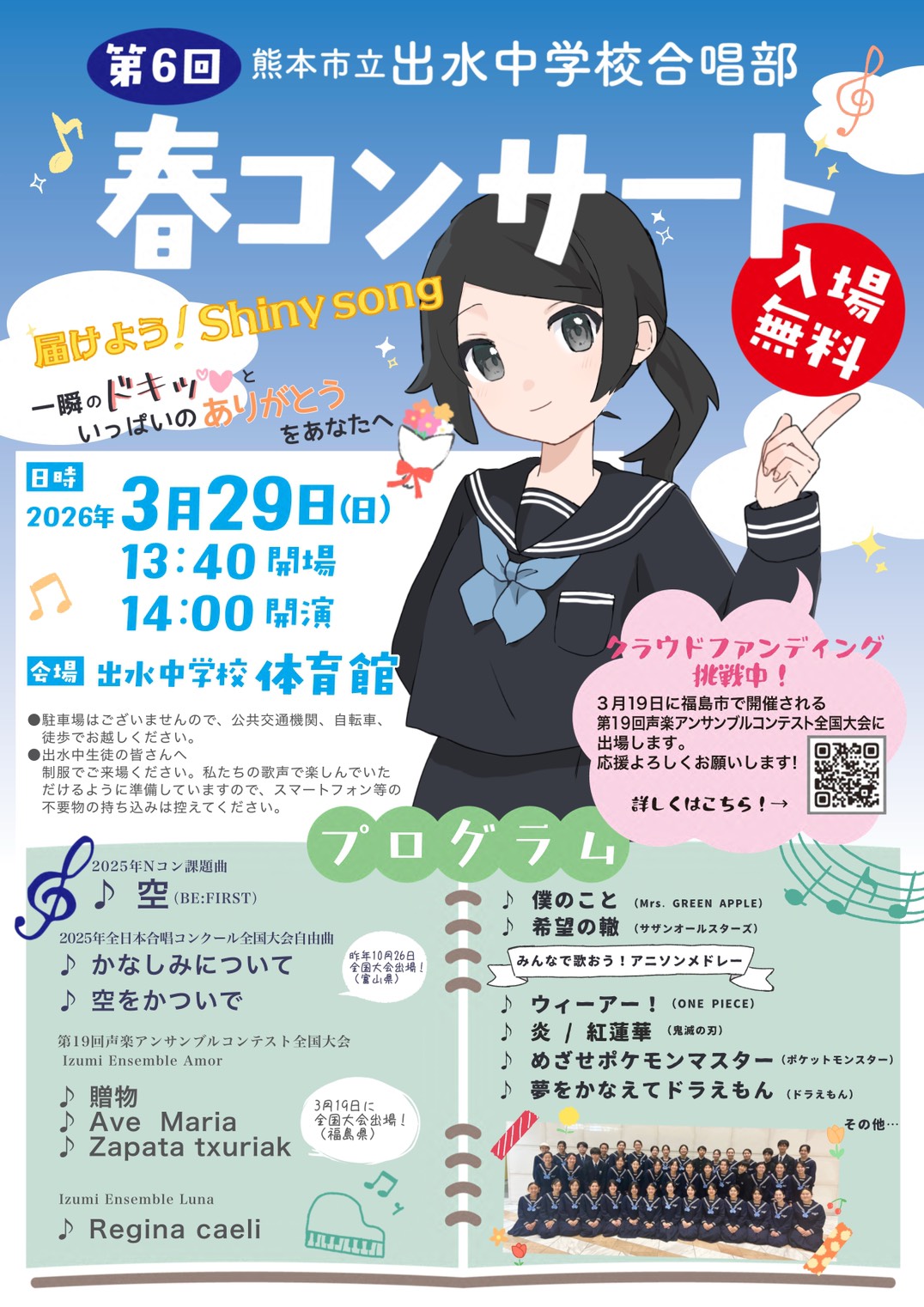 全国の舞台で出水中学校合唱部の歌声を響かせますので、どうぞ引き続き応援よろしくお願いいたします。