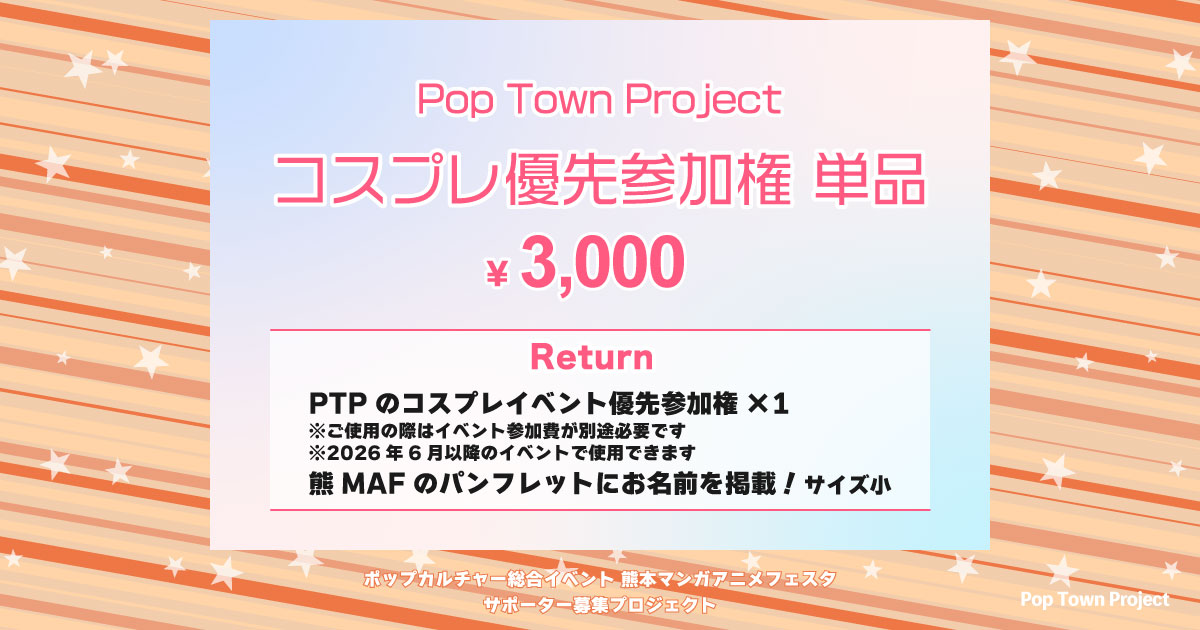 PTPイベント優先参加権・コスプレ参加権の詳細およびご利用条件は、こちらのページと各コース内のご案内事項にまとめております。※数量限定のため、予定口数に達した場合は受付を終了させていただきます。ご希望の方は、お早めにお申込みくださいますようお願いいたします。