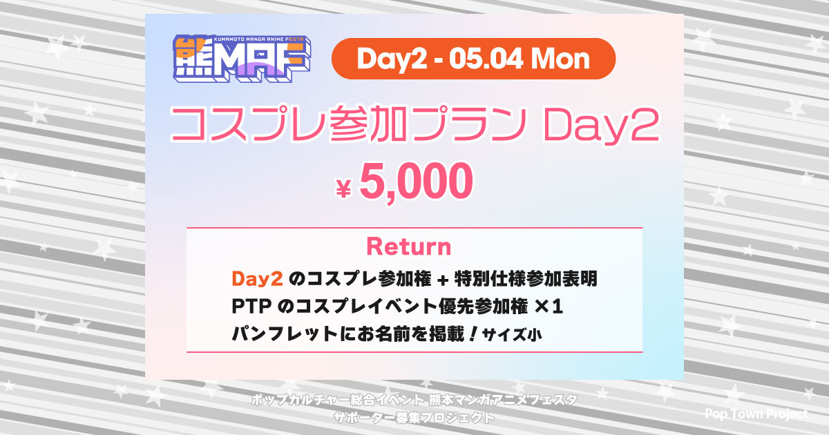 5,000円:Day2コスプレ参加権+優先参加権コース【限定15口】