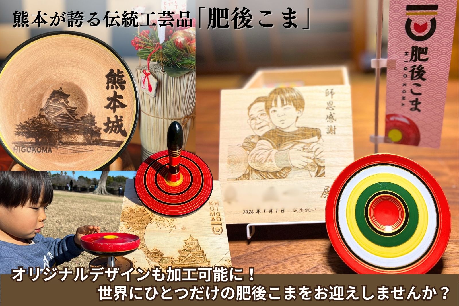 400年続く熊本の伝統「肥後こま」に、レーザー加工という現代技術を掛け合わせ、“飾れて・贈れて・想いを刻める”世界に1つだけの肥後こまをつくりました!