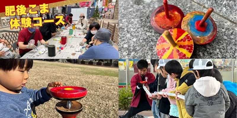 肥後こまの絵付け体験、こま回し体験、パフォーマンス披露がセットになった充実の内容です。