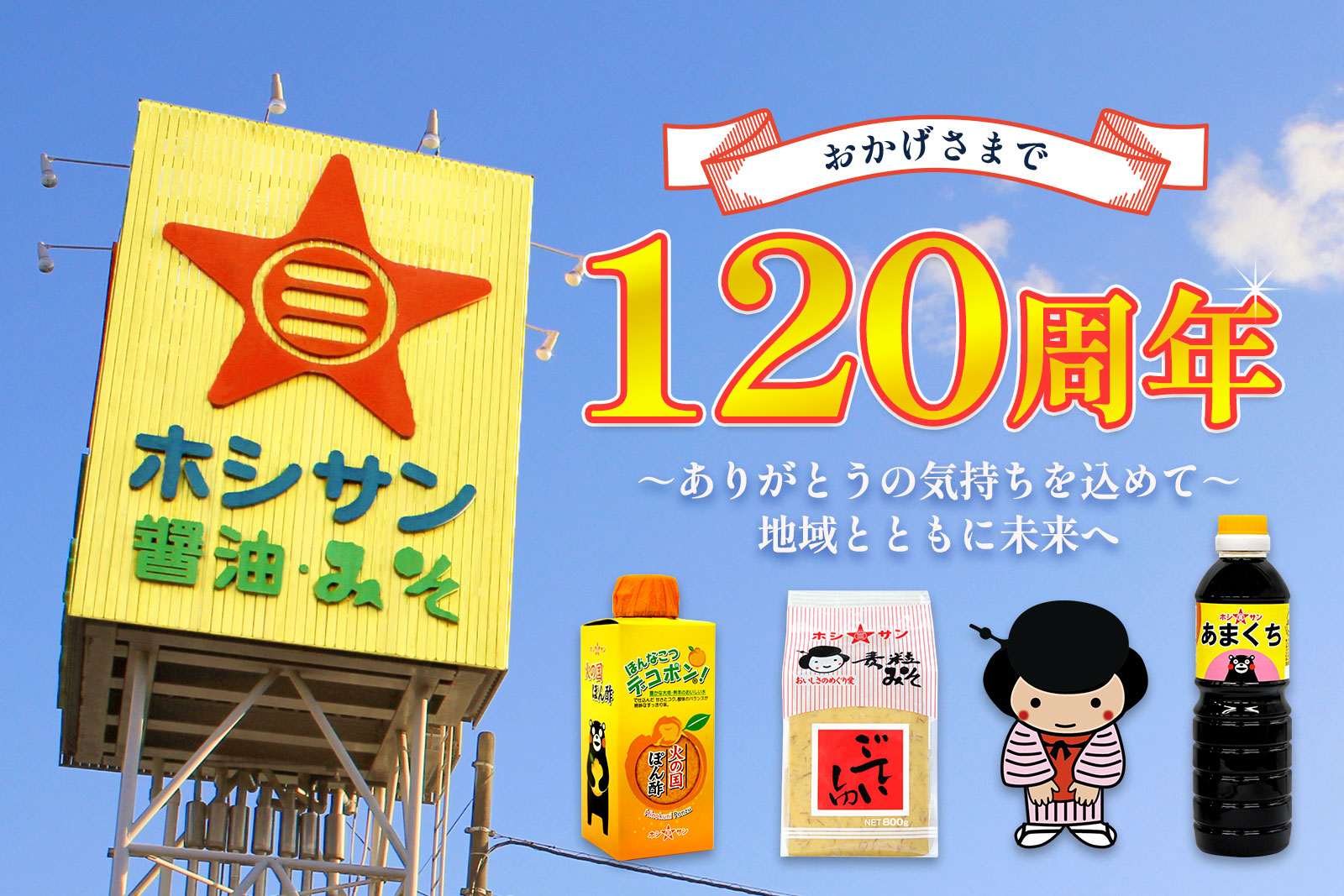 明治39年から続く味噌・醤油づくりを、熊本の地で今日まで作り続けてこられたのは、支えてくださった地域の皆様、そして全国のお客様のおかげです。その感謝の気持ちと、これからの新たな挑戦への想いを込めて、『120周年記念プロジェクト』を立ち上げました!
