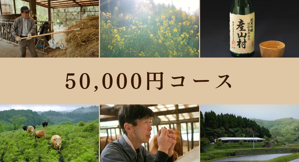 企業・団体の皆さまに向けた特別コースです。エンドロールへのお名前掲載に加え、産山村の地酒『産山村』をセットでお届けいたします。また、ご支援金額に応じて、井信行さんが育てたあか牛「信行牛」を使った商品、信行さんの自伝本などもご用意。それぞれの品は旬の時期に合わせて順次お届けいたします。