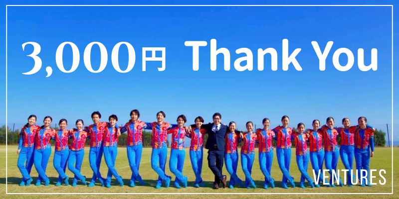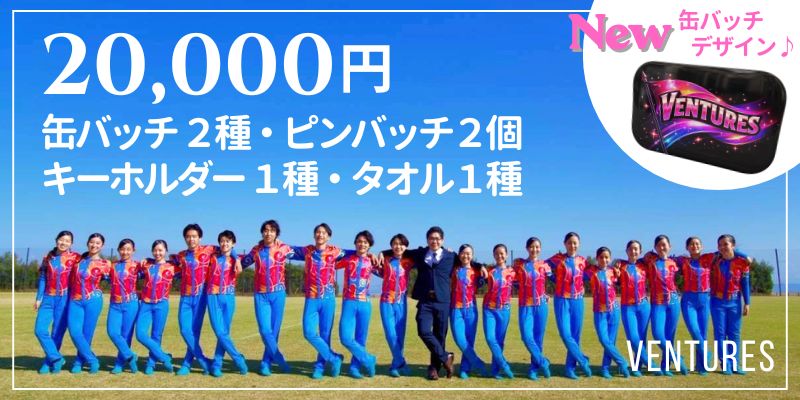 個人の方はもちろん、法人様向けに、全14種類のご支援コースをご用意しました。ご支援いただいた皆様には、お礼のメッセージや遠征の報告をメールでお送りするとともに、お名前の掲載や、Venturesオリジナルグッズをお届けいたします。